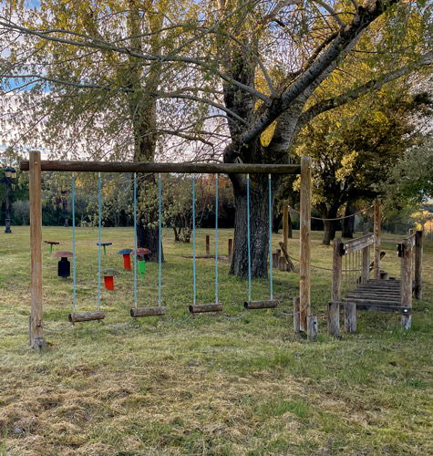 Varias atracciones construidas en estilo rústico permiten a los niños disfrutar al aire libre de columpios, pasarelas y otros juegos.