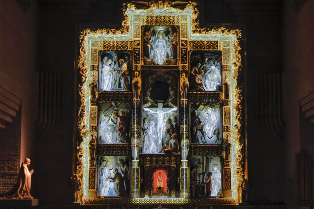 Fascinante experiencia audiovisual en la que el retablo del santuario despliega toda su riqueza de contenido.